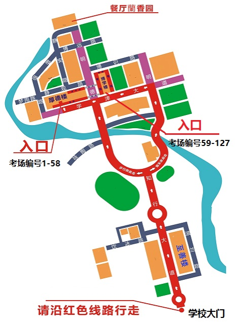 1.考生可乘坐2路和805路公交车前往本考点—绵阳市高新区绵兴西路166号,因本次考试考场设置在本考点的厚德楼和博学楼,距离考点大门约25分钟步行路程,请合理安排好自己行程,以免耽误笔试入场。每场考试前,考生应至