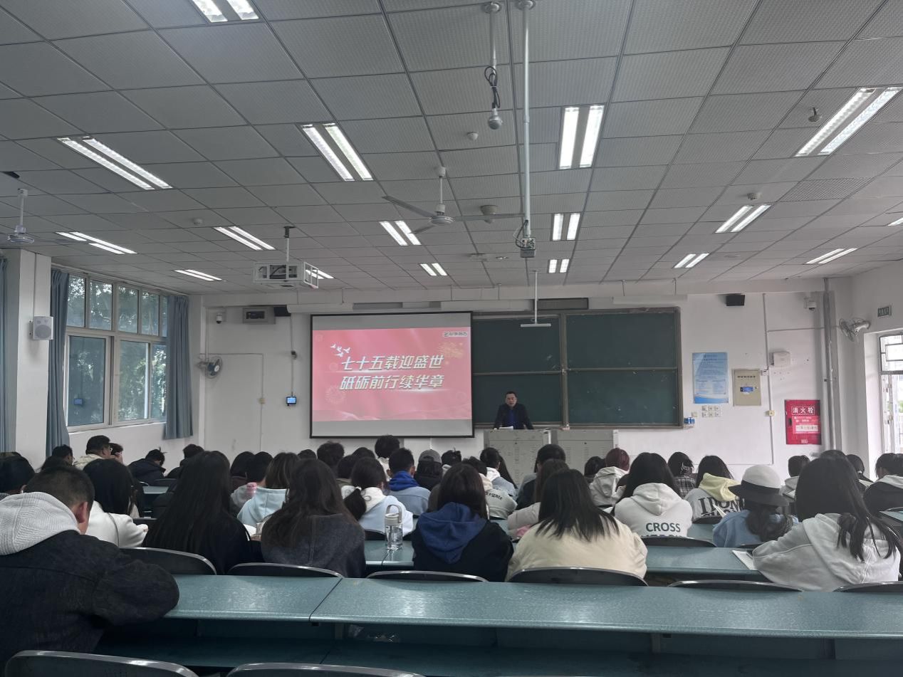 近日,学校党委常委、副院长王力为美术与艺术设计学院2024级4-6班学生讲授了题为“七十五载迎盛世 砥砺前行续华章”的思政课。