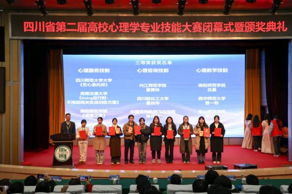 12月10日,由四川省心理学专业教学指导委员会主办,四川师范大学承办的四川省第二届心理学技能大赛决赛拉开帷幕。此次比赛为期两天,共设有五个赛道,分别为心理情景剧、心理服务技能、心理咨询技能、心理教学技能以及心理科普视频赛道。教育科学学院应用心理学专业参赛学子在心理教学技能、心理服务技能以及心理科普视频赛道中取得了二等奖1项、三等奖2项。