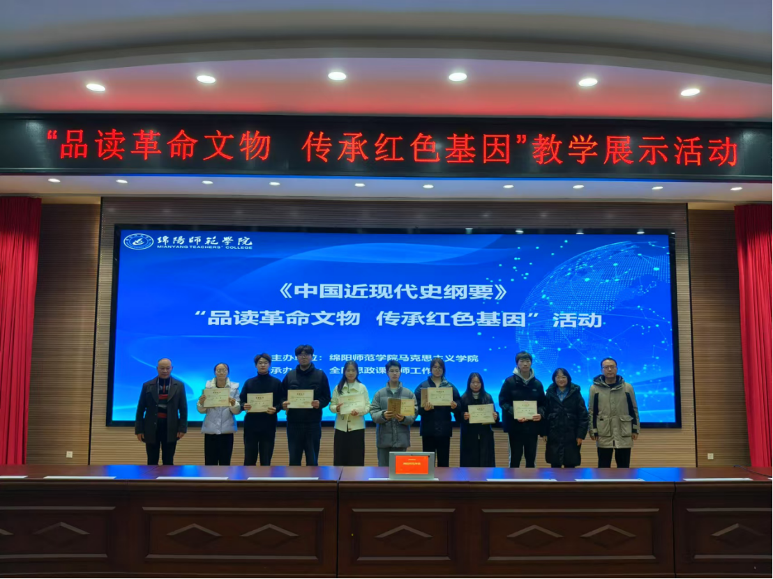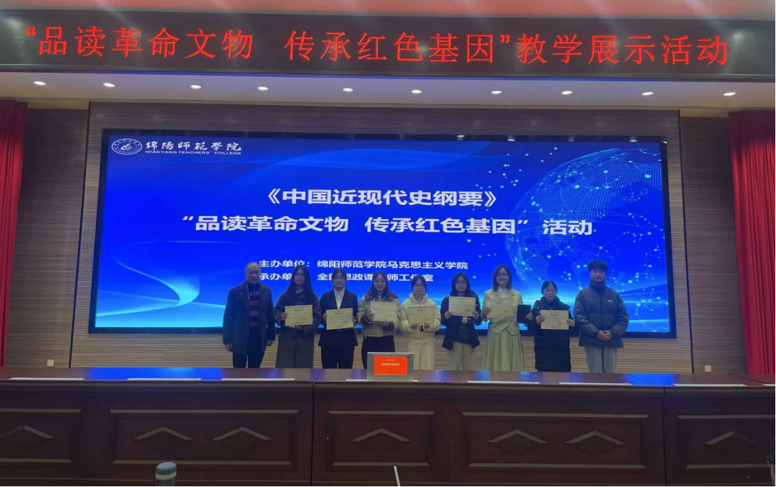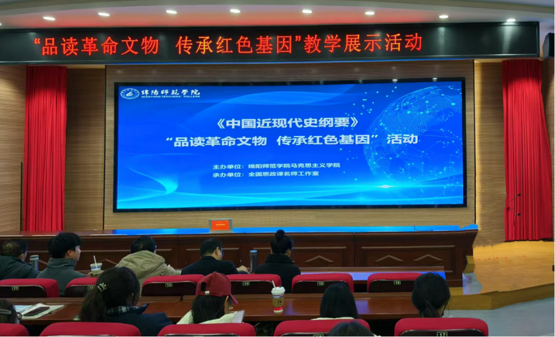 为深入贯彻落实习近平总书记关于学校思政课建设的重要指示精神,切实发挥思政课在立德树人中的关键作用,积极推进“大思政课”高质量建设,12月26日,由马克思主义学院主办、全国思政课名师工作室(绵阳师范学院)、国家级一流课程《中国近现代史纲要》课程团队承办的“品读革命文物 传承红色基因”教学展示活动在厚德楼247报告厅成功举行。全国思政课名师工作室负责人、马克思主义学院主要负责人、5·12汶川特大地震纪念馆学术研究科科长杨孟昀、《中国近现代史纲要》团队全体教师以及2024级200余名学生参加本次活动。