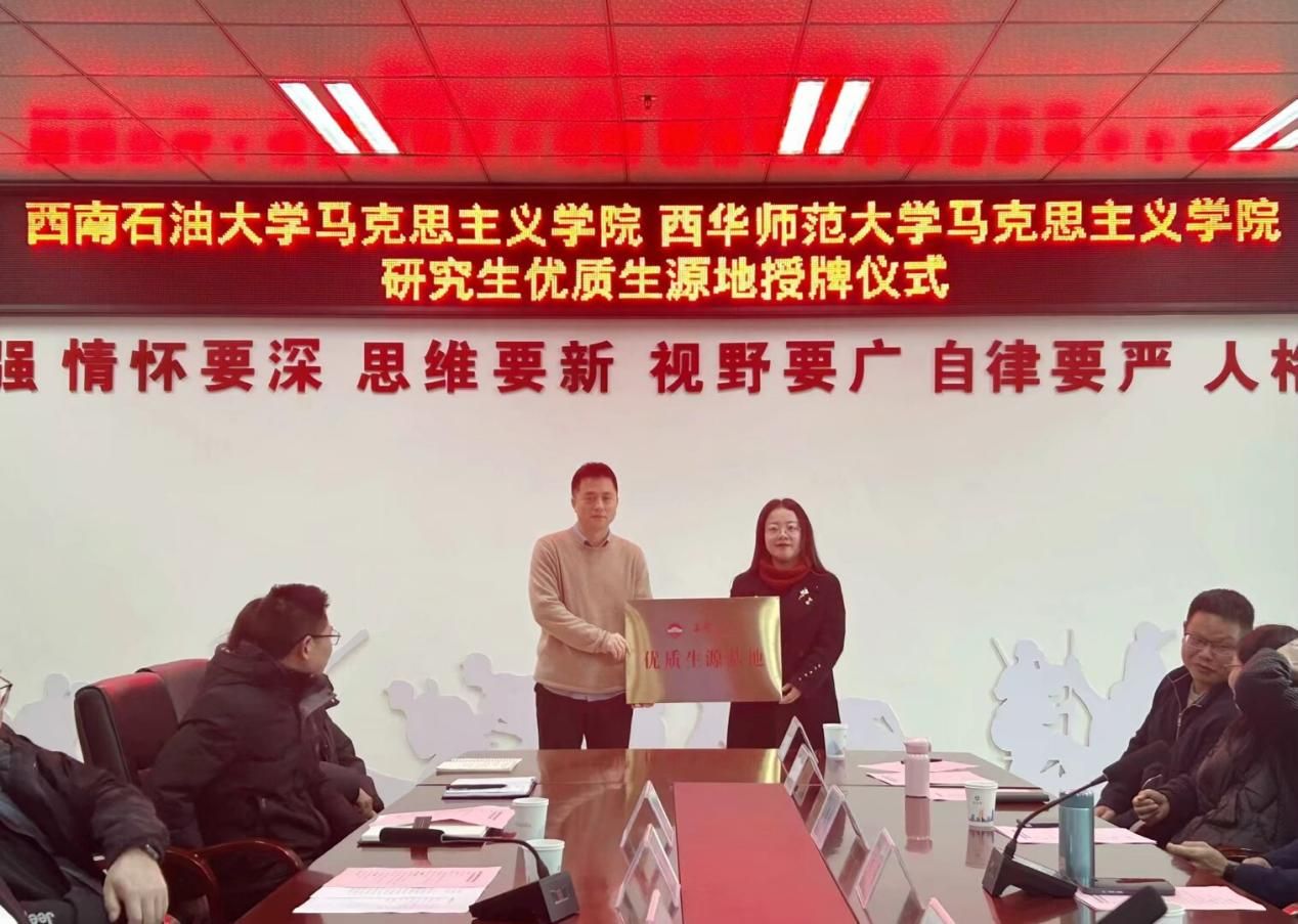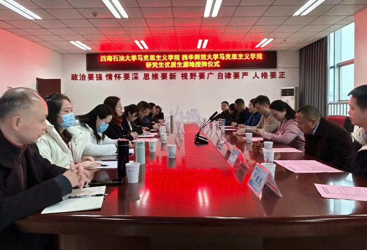 2025年3月1日,马克思主义学院于知行楼432会议室举行优质生源地挂牌仪式暨学科教学思政硕士点建设交流研讨会。马克思主义学院党政班子、教师代表、科级干部及学生代表等相关人员参会。西华师范大学马克思主义学院院长张晓明、西南石油大学马克思主义学院党委副书记林莉、副院长张莉等校外专家应邀参加本次活动。学校党委副书记、校长李敏教授出席活动并讲话。