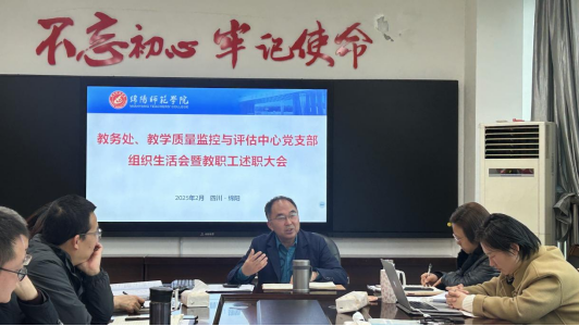 随后,教务处处长、教学质量监控与评估中心主任邹洪伟传达了学校改革发展大会及春季干部培训会核心精神,并结合教务处、教学质量监控与评估中心职能定位,对2025年重点工作进行了部署,并重点强调了工作纪律。