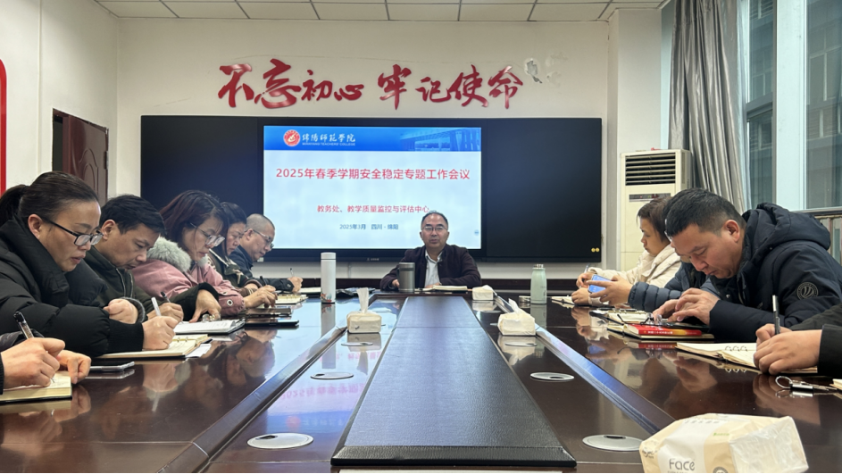 为深入贯彻落实学校2025年春季学期安全稳定工作会议精神,进一步强化安全责任意识,3月5日上午8:30,教务处、教学质量监控与评估中心在知行楼122会议室召开2025年春季学期安全稳定专题工作会。教务处处长、教学质量监控与评估中心主任邹洪伟主持会议,全体教职工参加会议。