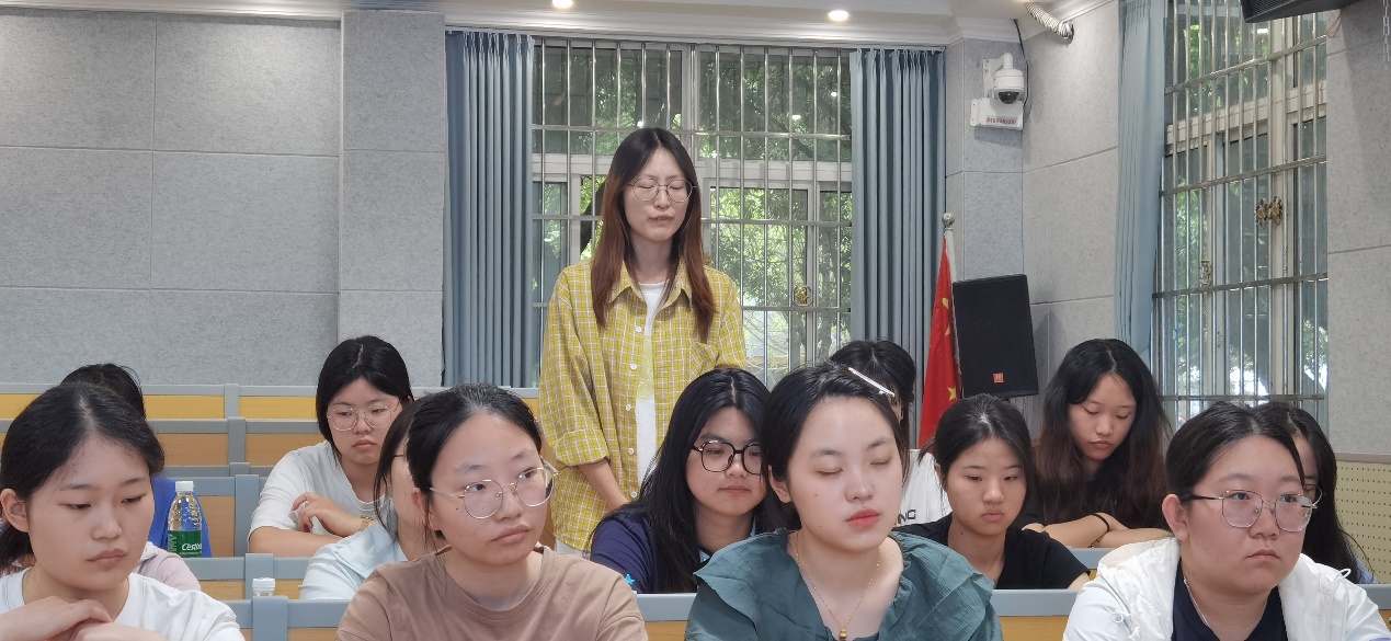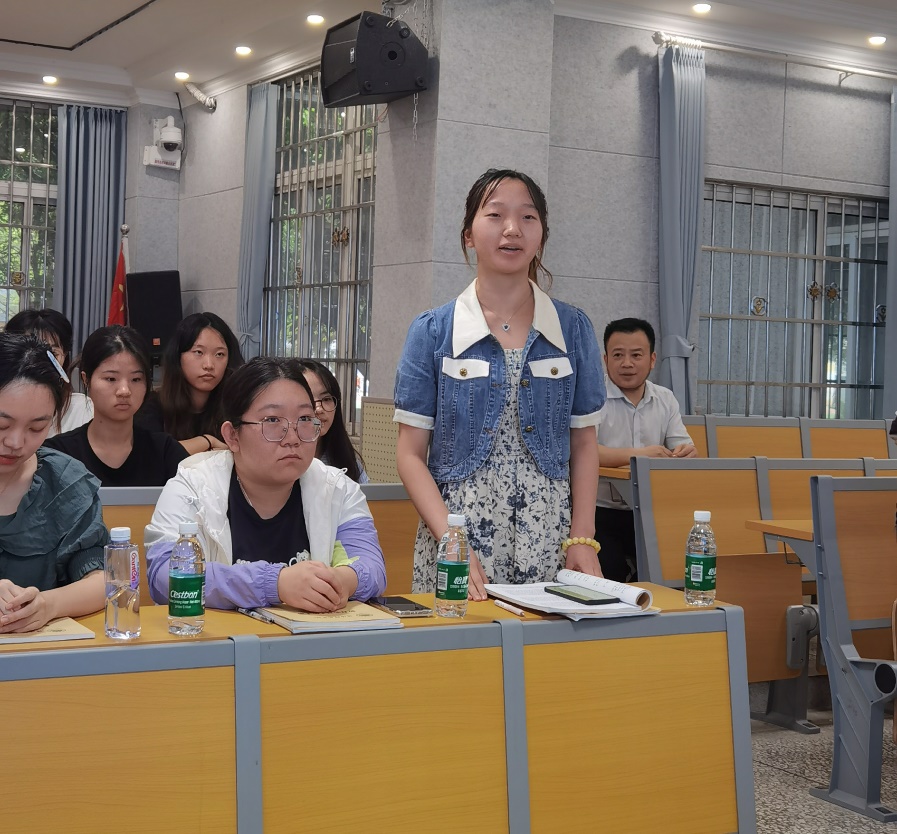 马克思主义学院杨爽同学作为实习生代表汇报实习工作,她系统总结了三个月的实习成果,包括个人成长收获与存在的问题反思。随后,数学与应用数学专业马馨怡、应用心理学专业何林同学依次发言,向与会领导、师生汇报实习成效和心路历程,表达了对游仙中学指导教师和对学校提供实习实践平台的感激之情。