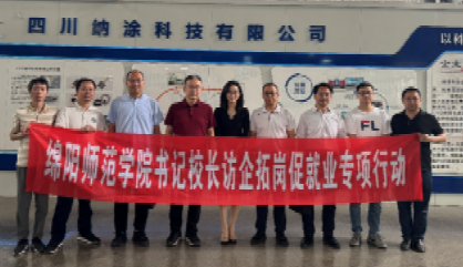 为深入贯彻国家产教融合发展战略,深化校地协同育人机制,服务地方经济社会高质量发展,5月29日下午,学校党委常委、副校长王杨带队前往德阳市罗江区,走进四川纳涂科技有限公司、四川蜀福本机械有限公司、德阳劲达节能科技有限责任公司、德阳瑞泰科技有限公司,开展访企拓岗及产学研合作专题调研活动。学校教务处负责人、化学与材料工程学院、物理与电子信息学院、智能制造学院相关负责人及专业教师代表等一行9人参与本次活动。